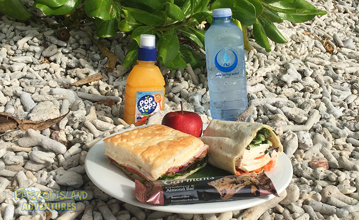 如果是Raging Thunder船公司的乘客建議可以加購午餐盒$15,可以選西式的捲餅或是日式牛肉咖哩,會付水和果汁,還滿方便且不貴。