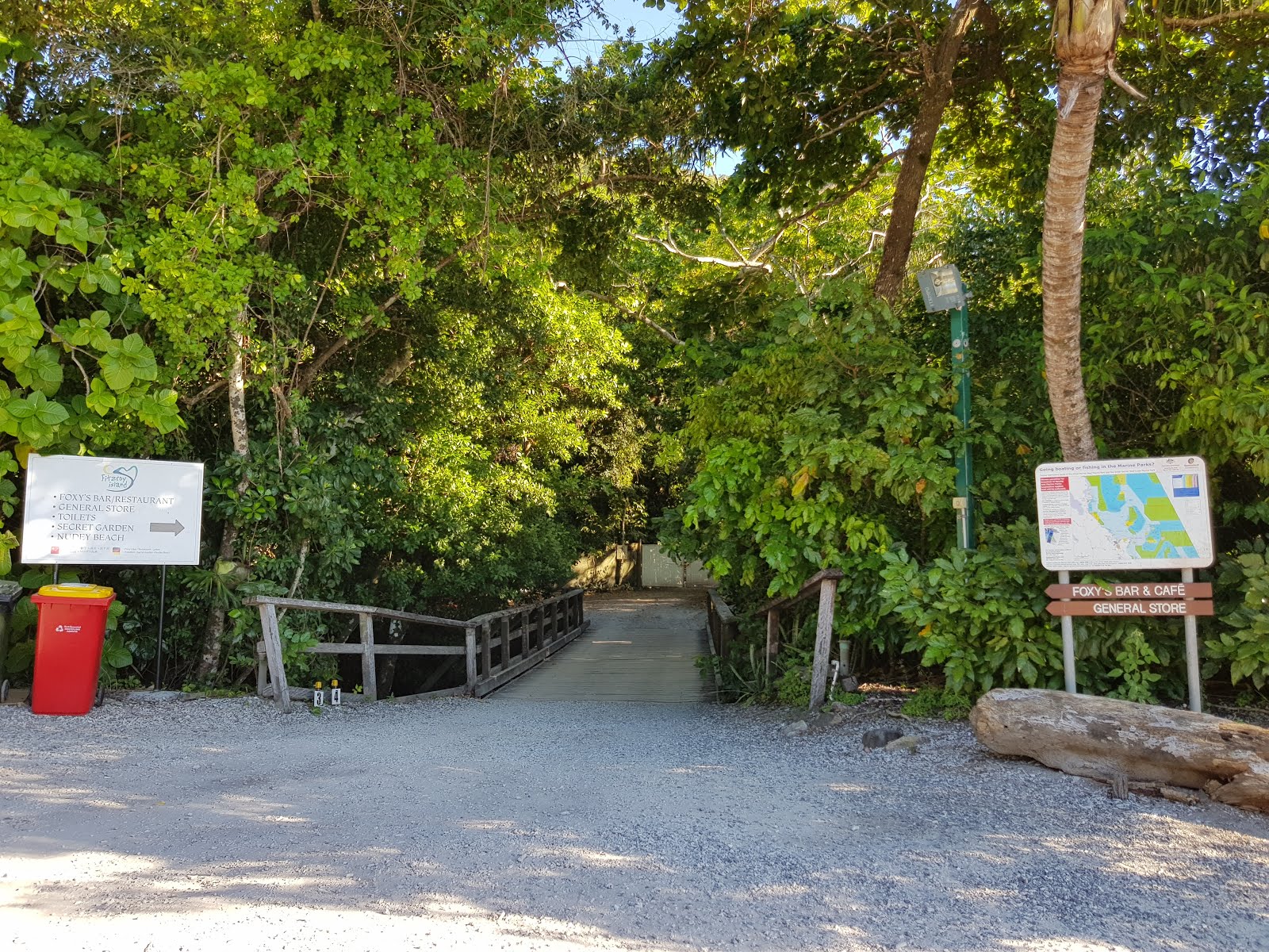 出碼頭右手邊直直走,過個小橋的另一邊就是廁所、雜貨店、一日遊旅客的置物櫃、Roxy’s Bar小酒吧、天體海灘(Nudey Beach)、秘密花園步道(Scret Garden Track)、吸菸區
