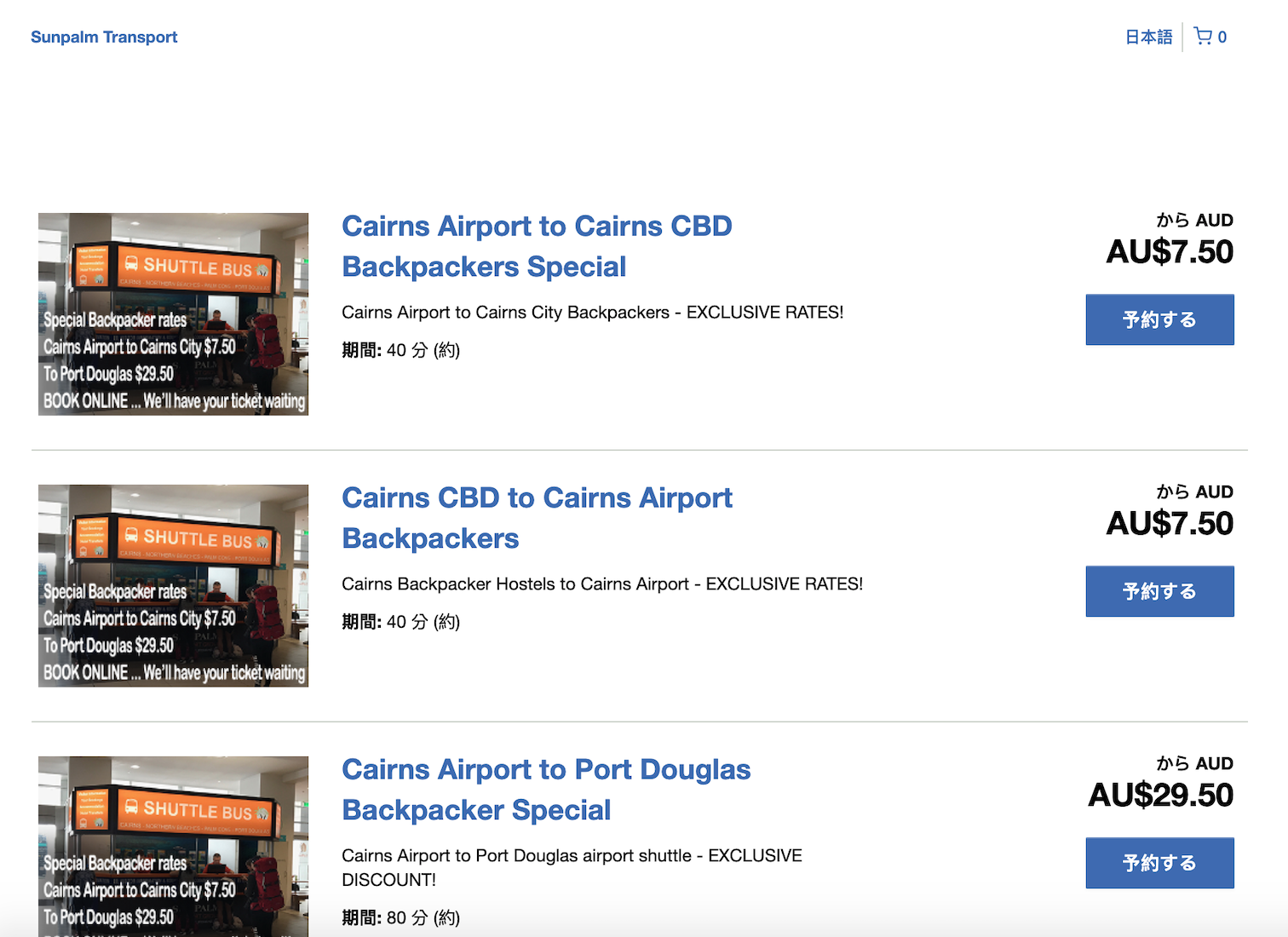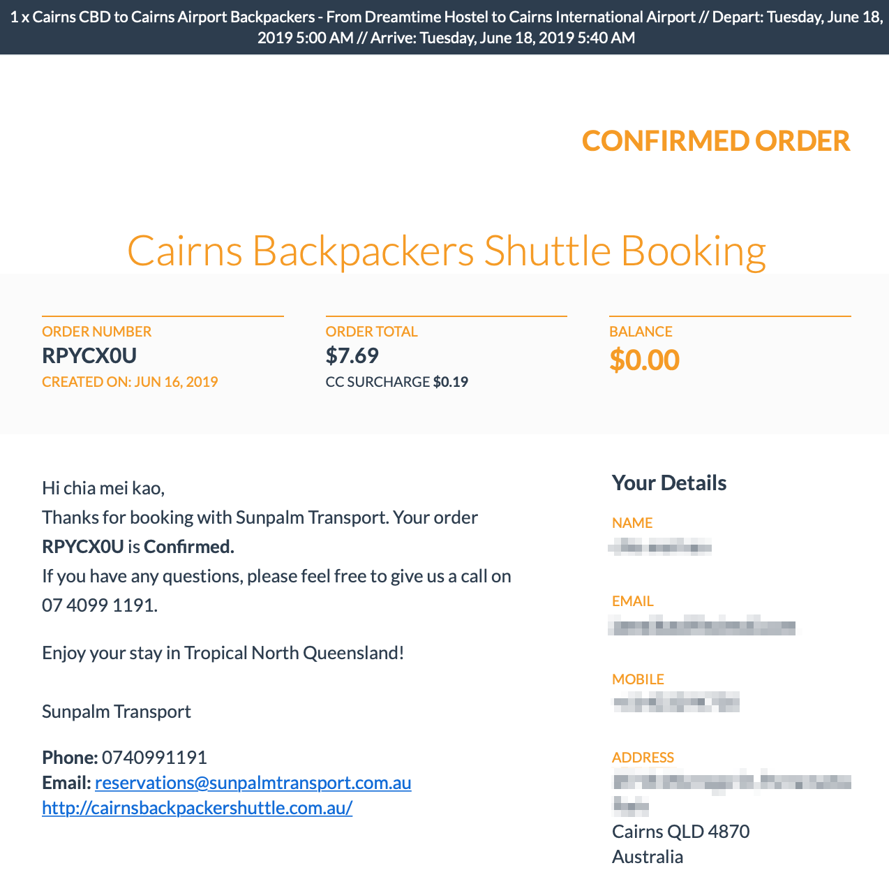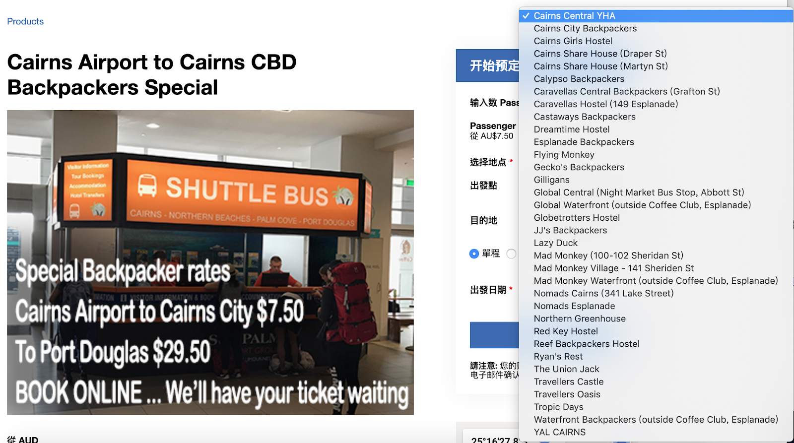 - 每個人行李的額度是:一個行李箱(不超過30公斤)和一個小型隨身行李,加一件行李需支付額外費用(凱恩斯$12、到北部海灘$18、到道格拉斯港$24)。