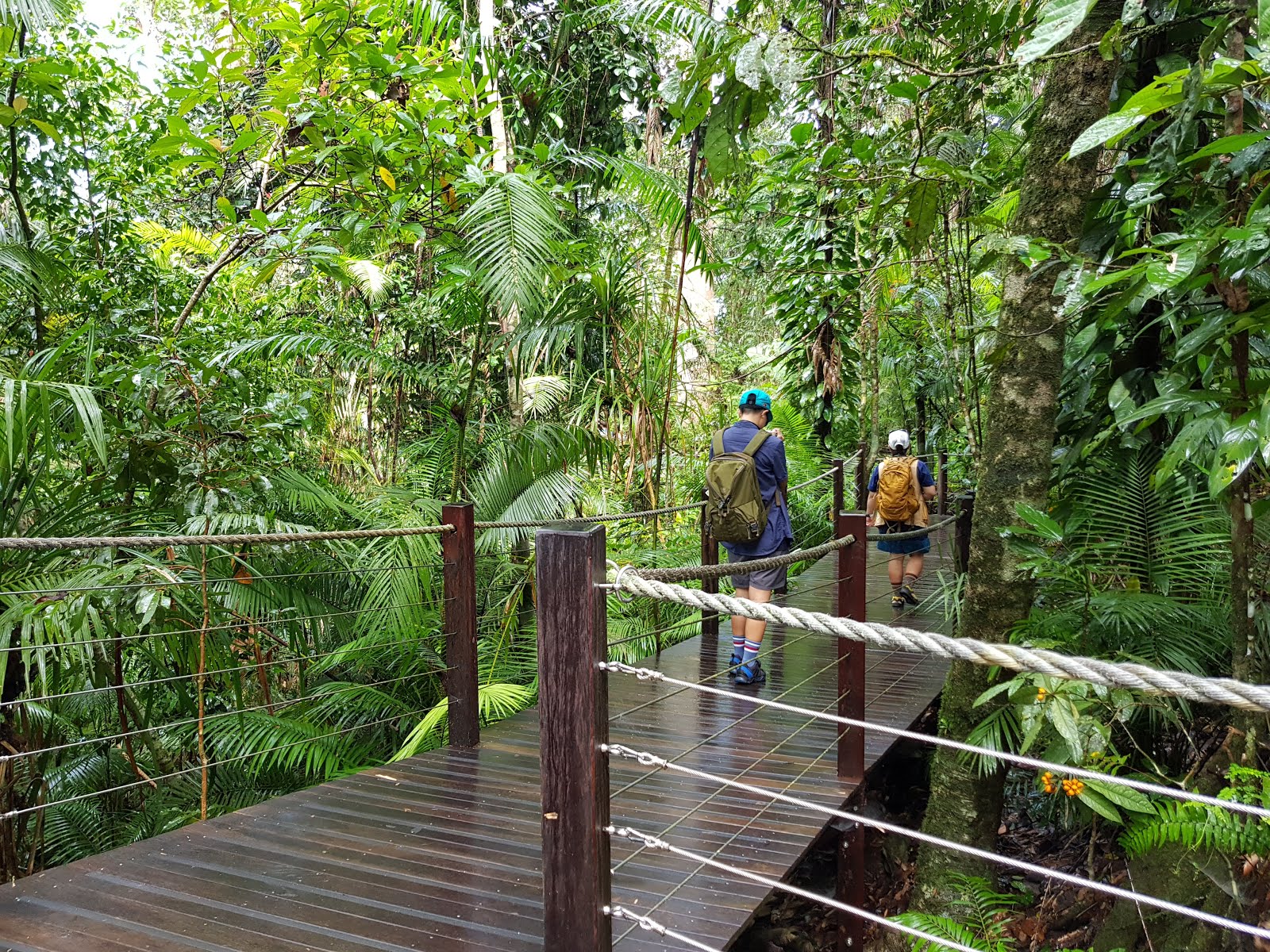 2~3小時 | $65.5 | 裡面有三大園區,可以分開買、也有組合票、家庭票,但三個園區都各自有特色,推組合包: 原住民文化體驗(Aboriginal Experience)$22 水陸兩用軍車導覽(Army Duck Rainforest Tours)$26 野生動物園(Wildlife park)$17.5 *加選:抱無尾熊或抱小鱷魚$23+ |