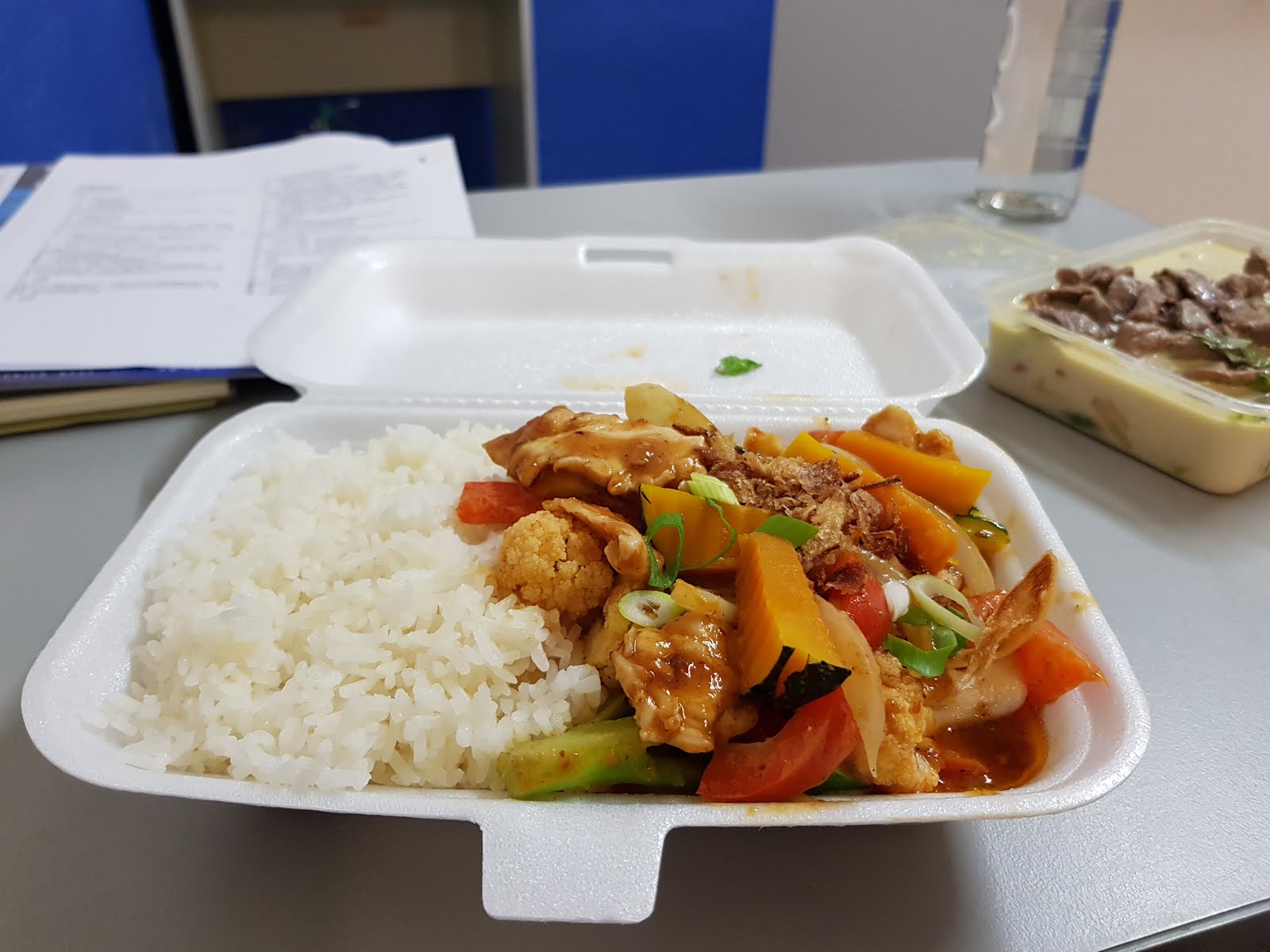 中午的時候,為了節省時間,學校有統一訂便當,我們就邊吃便當邊看影片做習題,是有沒有這麼拼(´w`*)
