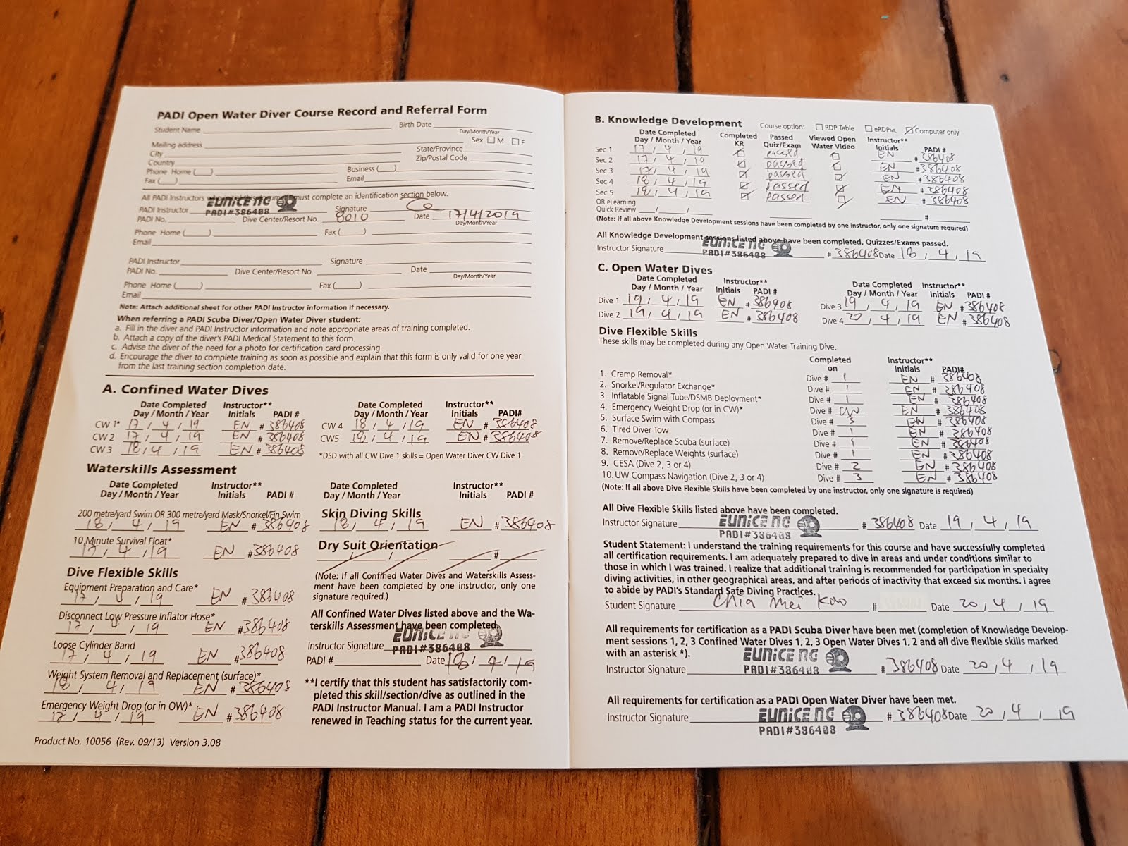 並且在海裡(開放水域)至少潛四支氣瓶。