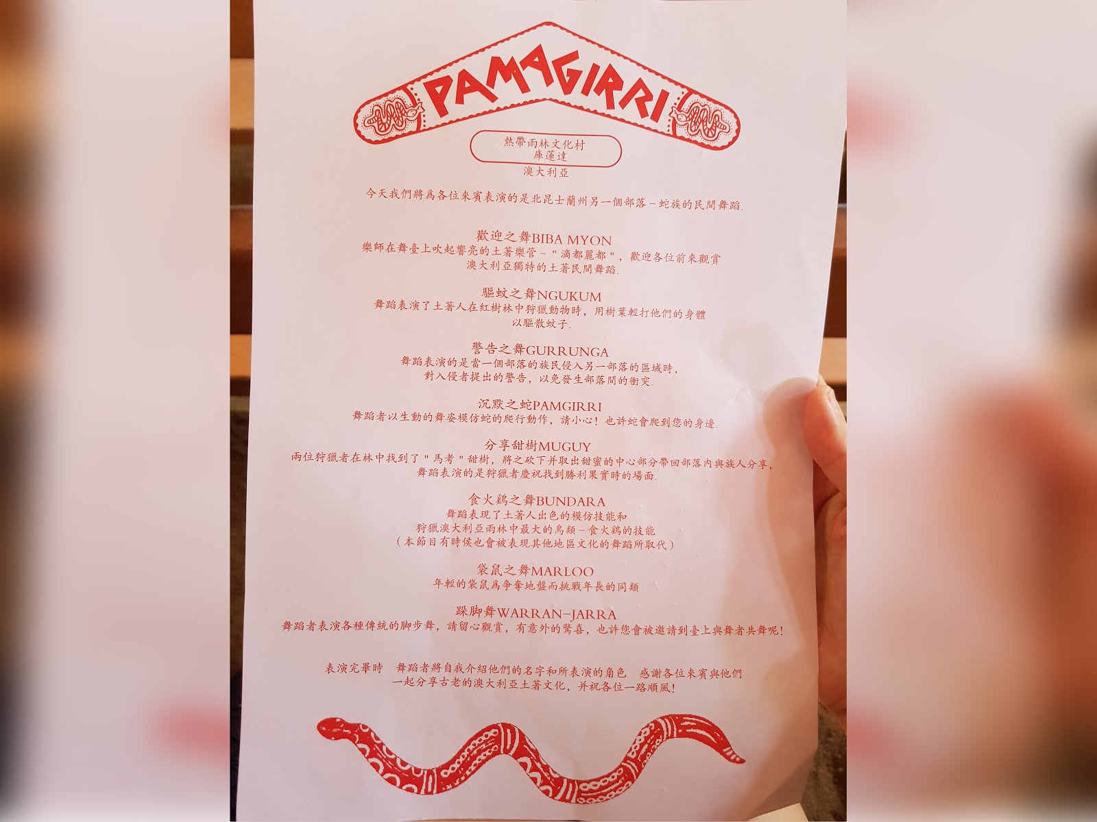 去看原住民們跳舞前,有個被翻成各種語言的節目表