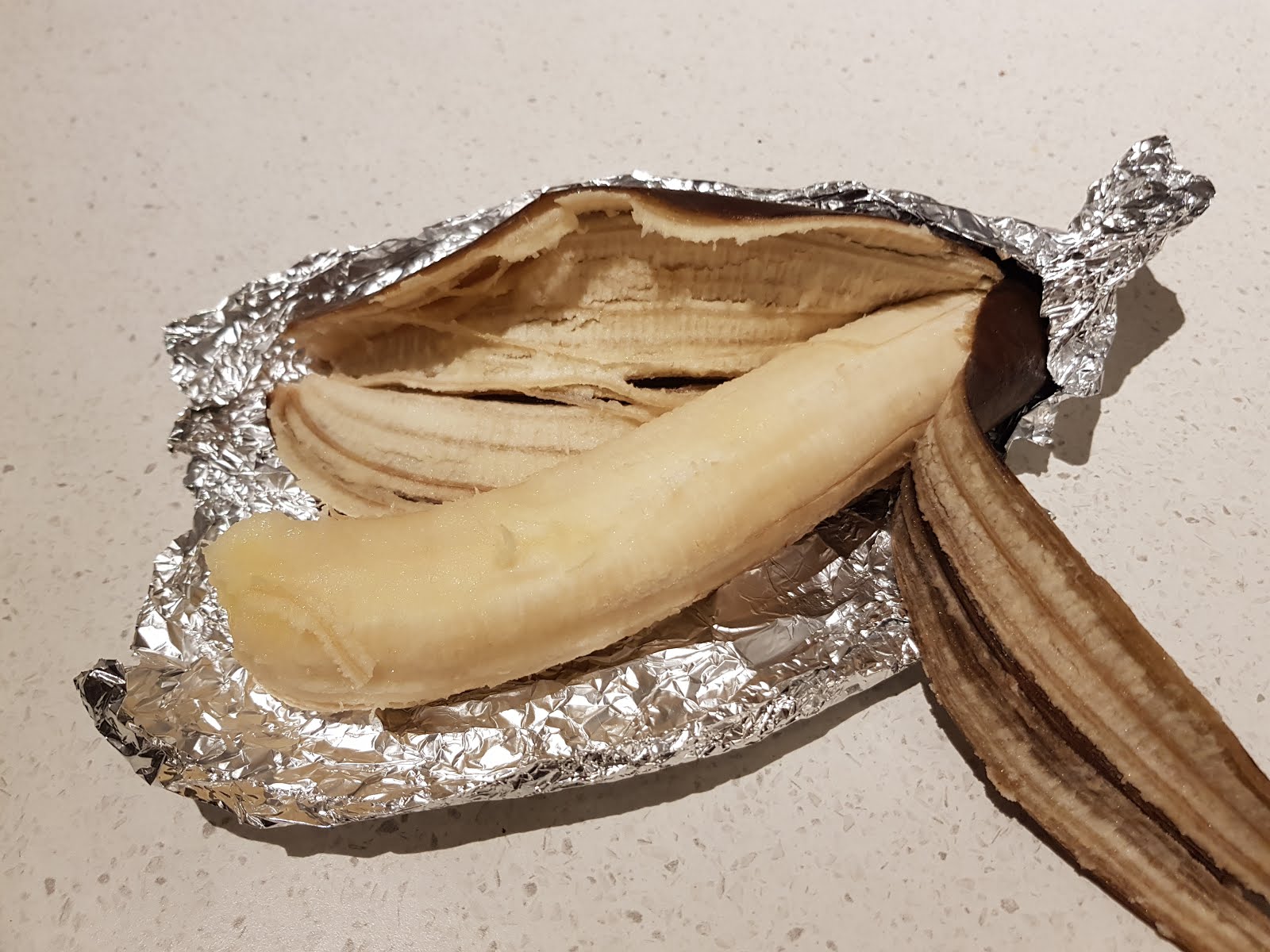 果皮是黑掉的,但打開來還是白白粉粉漂亮的香蕉(超吃驚)