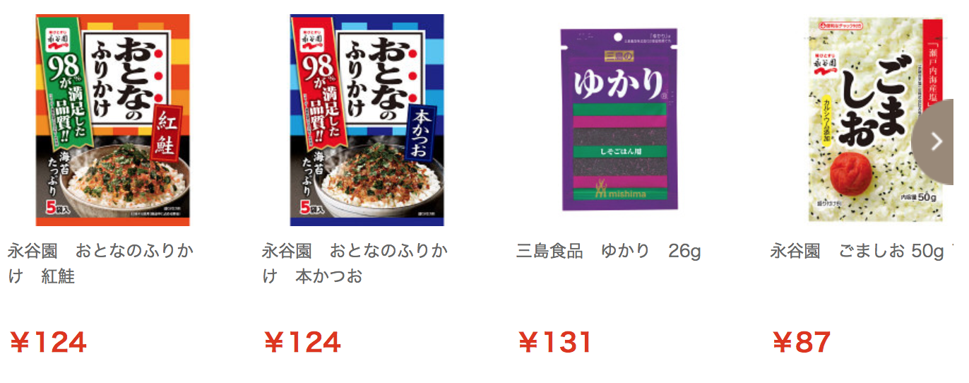 - 飯友:日本很常見,一包一百日幣而已很便宜,可以配在白飯上面吃,也可以拿來拌飯做飯糰。白芝麻、黑芝麻、鹽其實也可以拿來拌飯,喜歡就好。