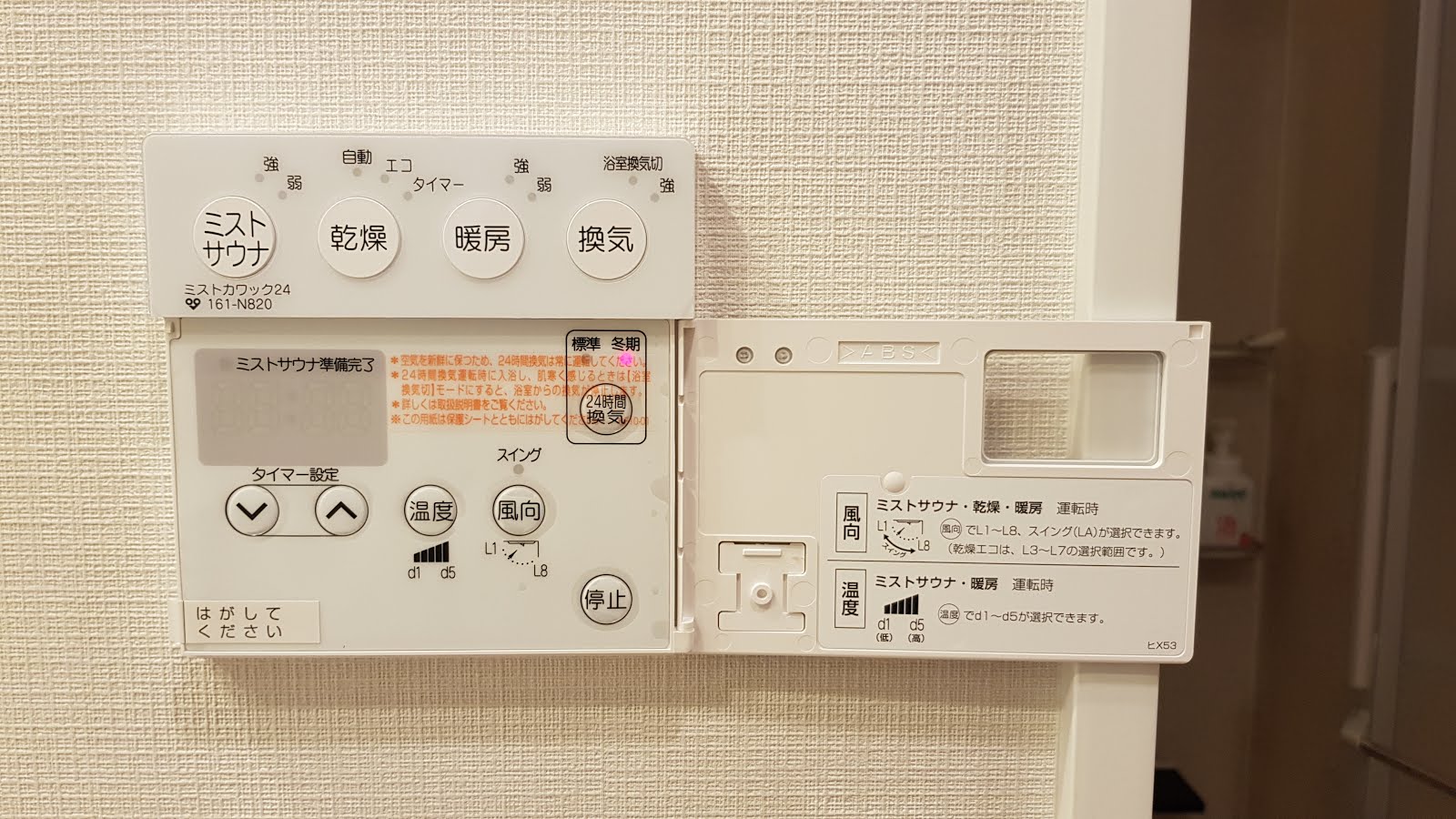 廁所的面板,有桑拿浴、乾燥、暖氣、換氣的功能