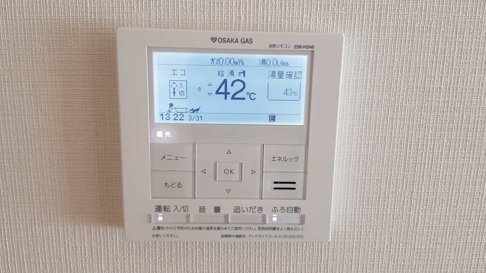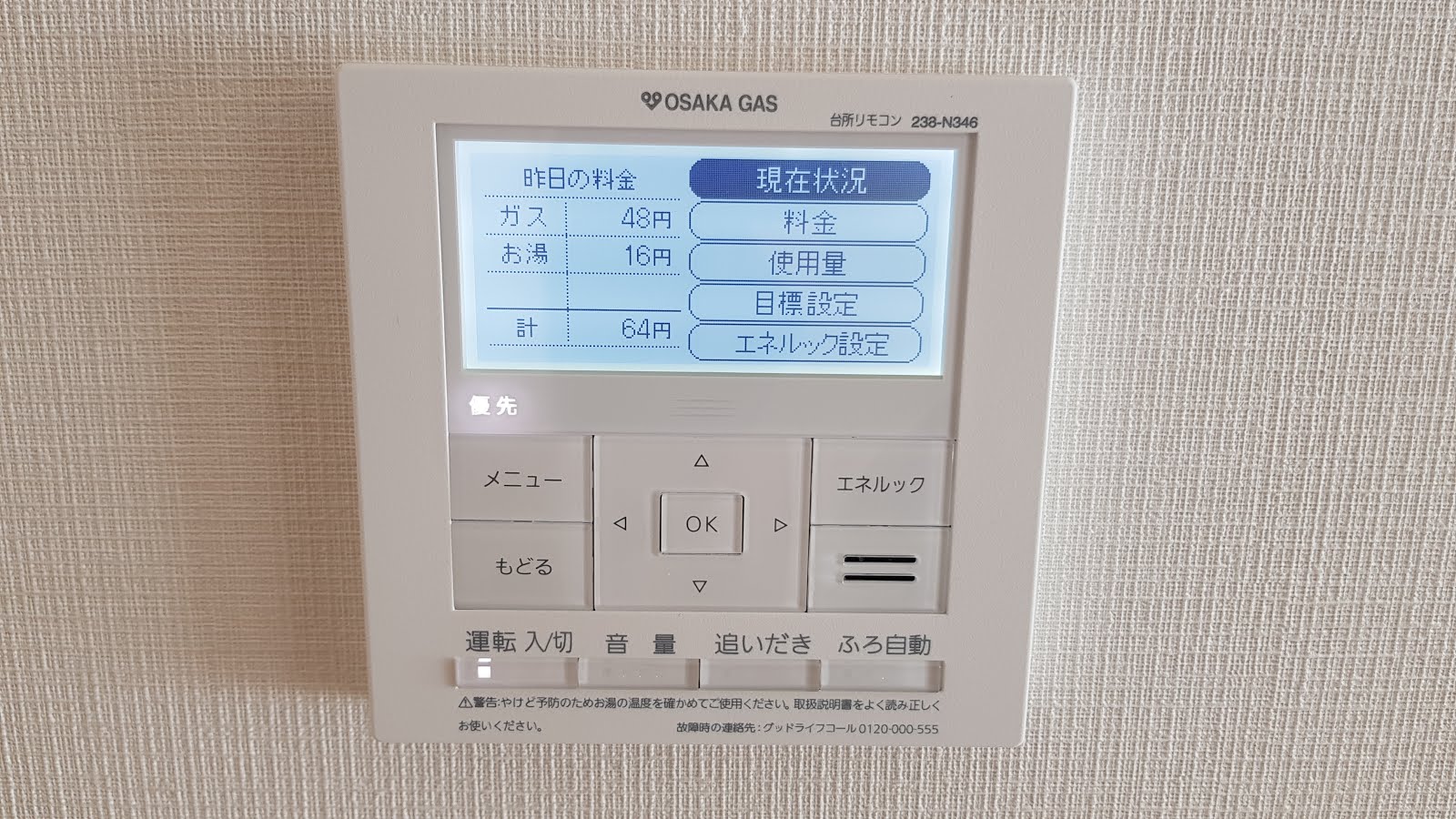 面板有兩個:廚房一個、浴室一個,這樣子一邊煮飯就可以先放洗澡水了。