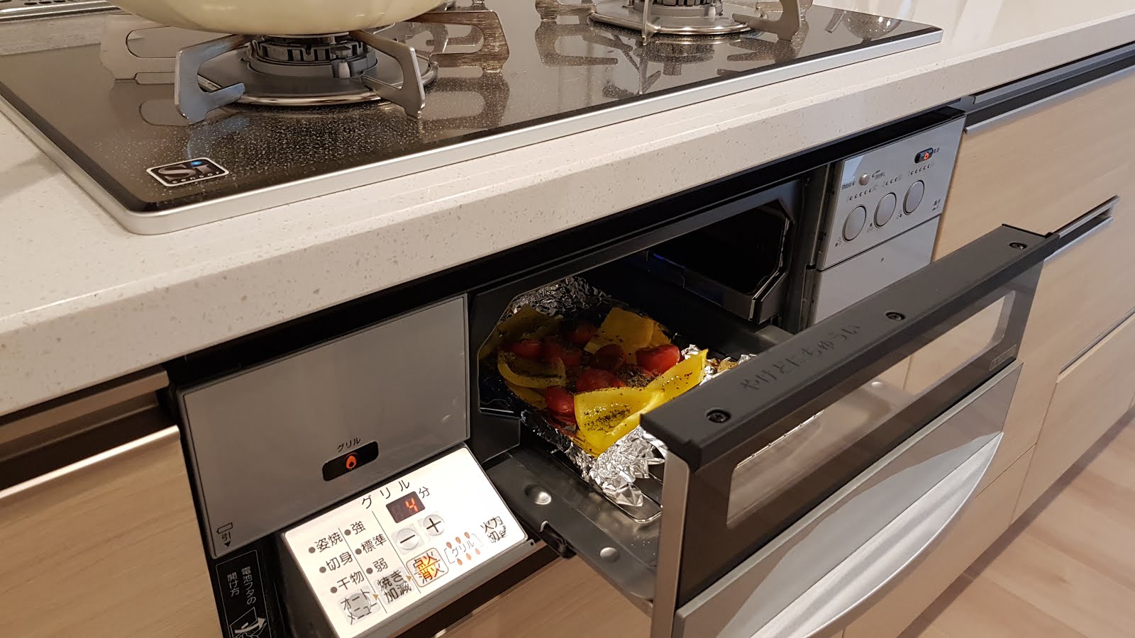 但後來發現瓦斯爐下方本身就附有一個烤魚的烤箱(註!這在日本算普及唷)所以把烤箱退回去了~