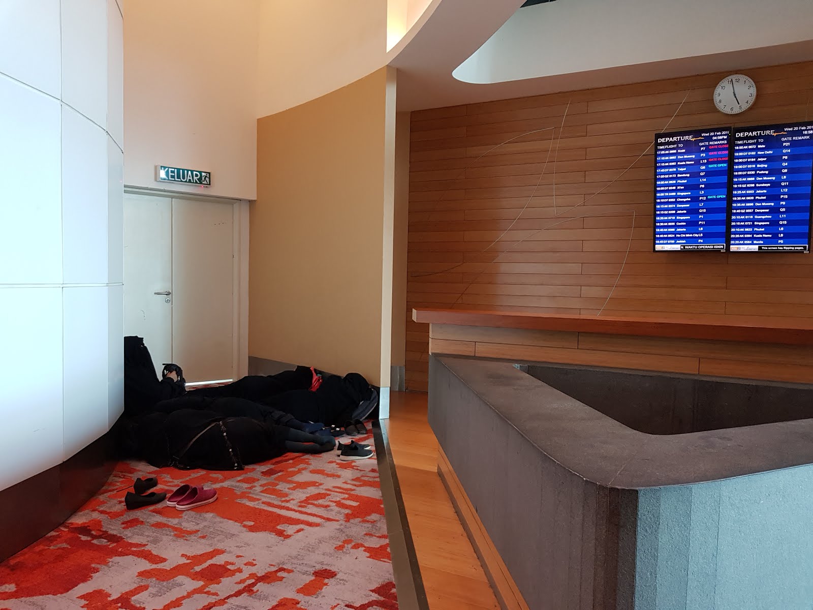 - 睡覺:大多數的人都直接在各個角落席地而睡、雖然有很多椅子但不是很好睡。如果很介意的朋友,可以去付費的Air Asia紅色貴賓室,裡面有可以躺平的區域,看起來滿安全的。