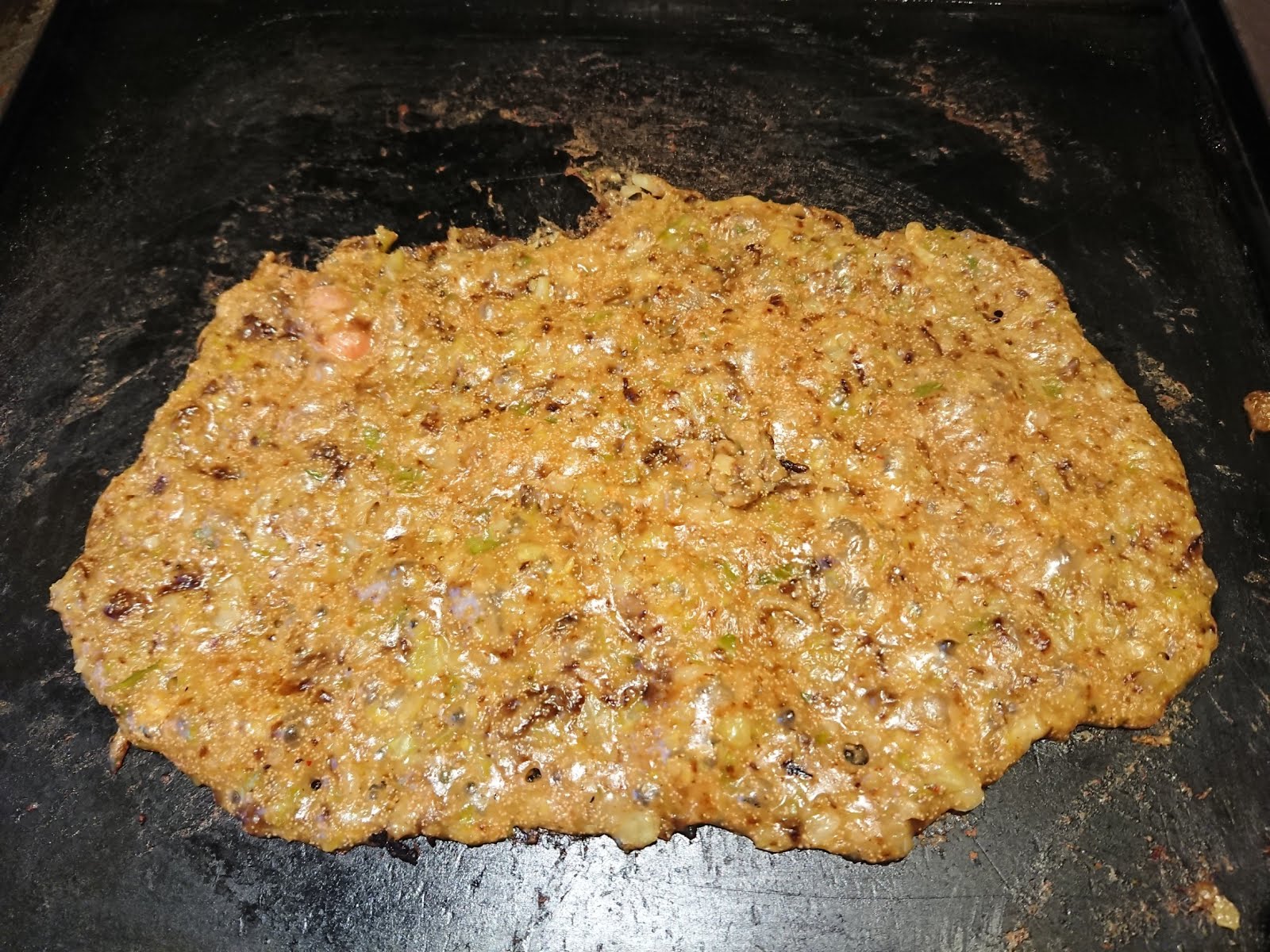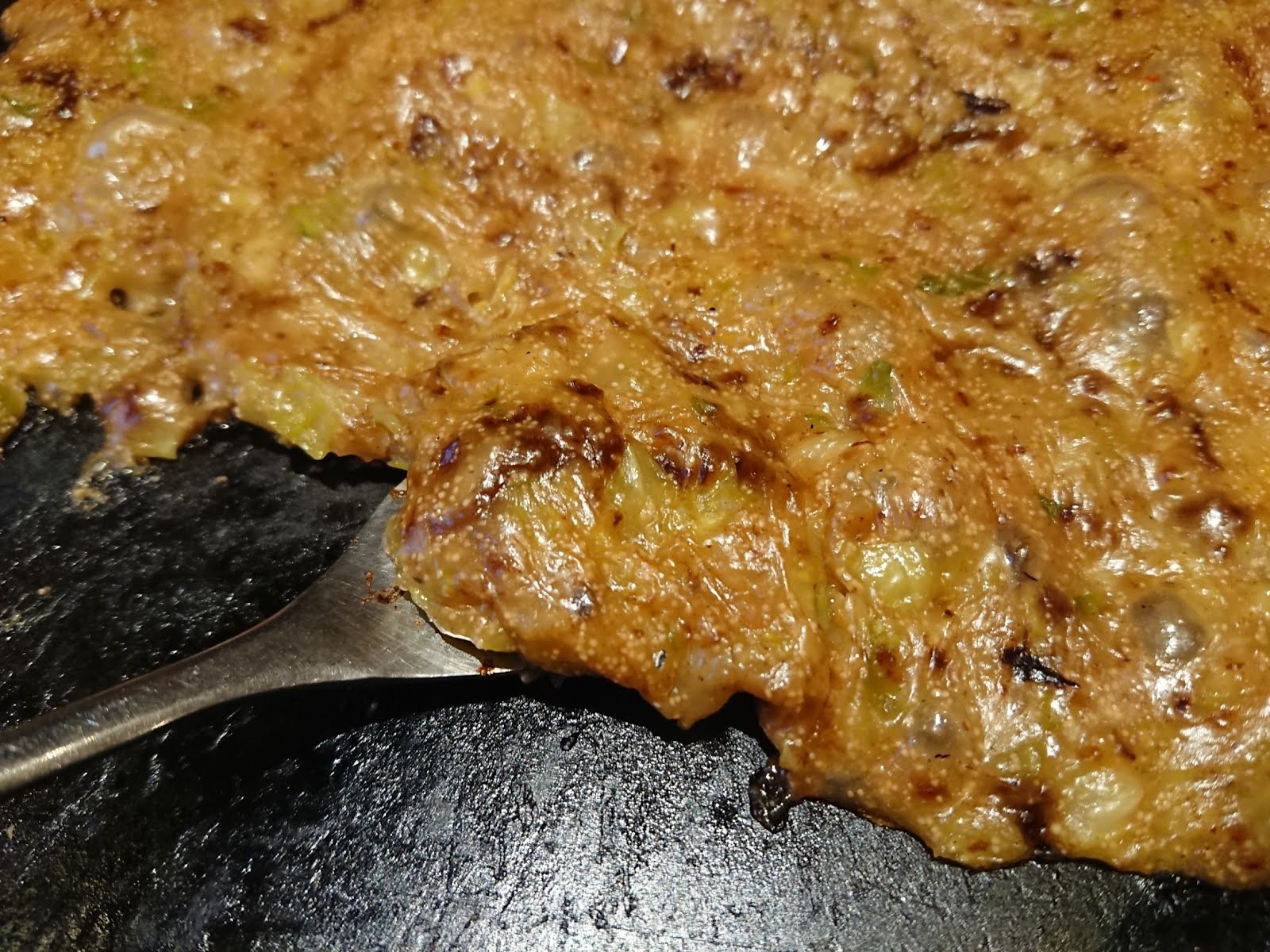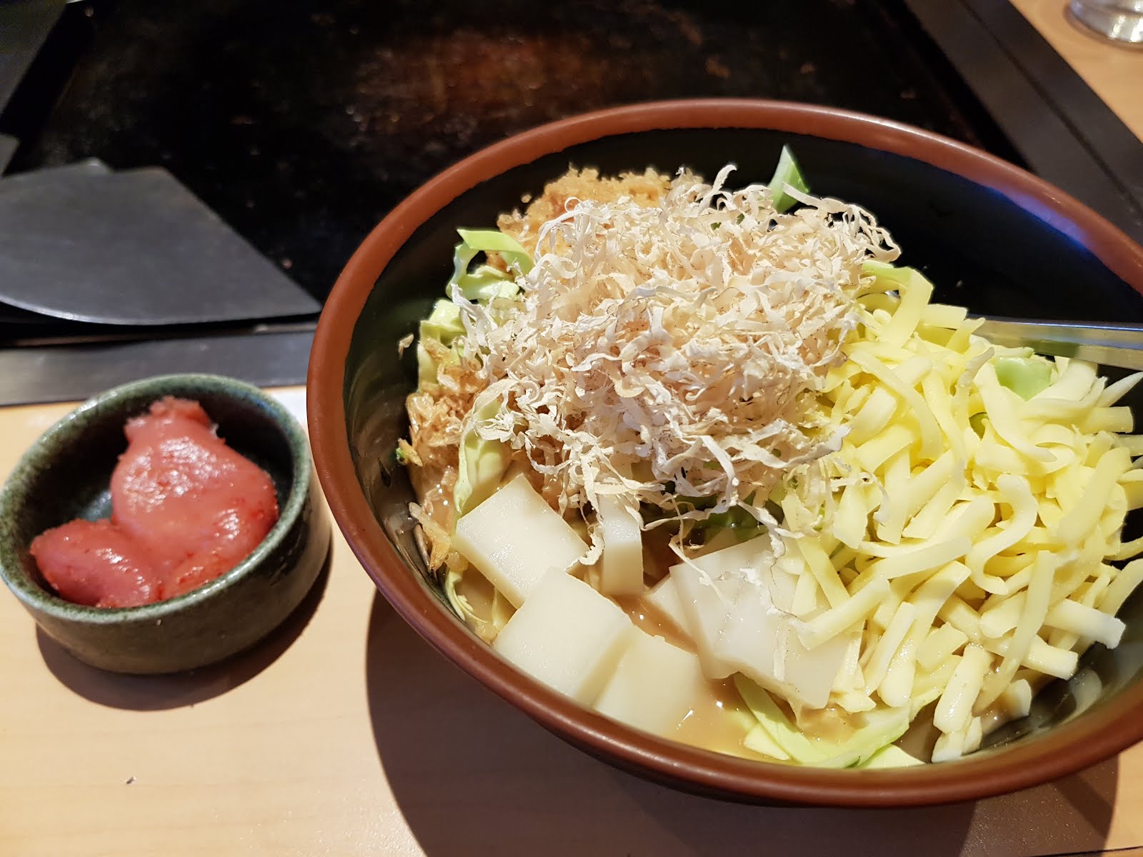 據說文字燒是以前日本戰後食物缺乏,大家就拿麵糊或入水加剩菜拌一拌煎來吃