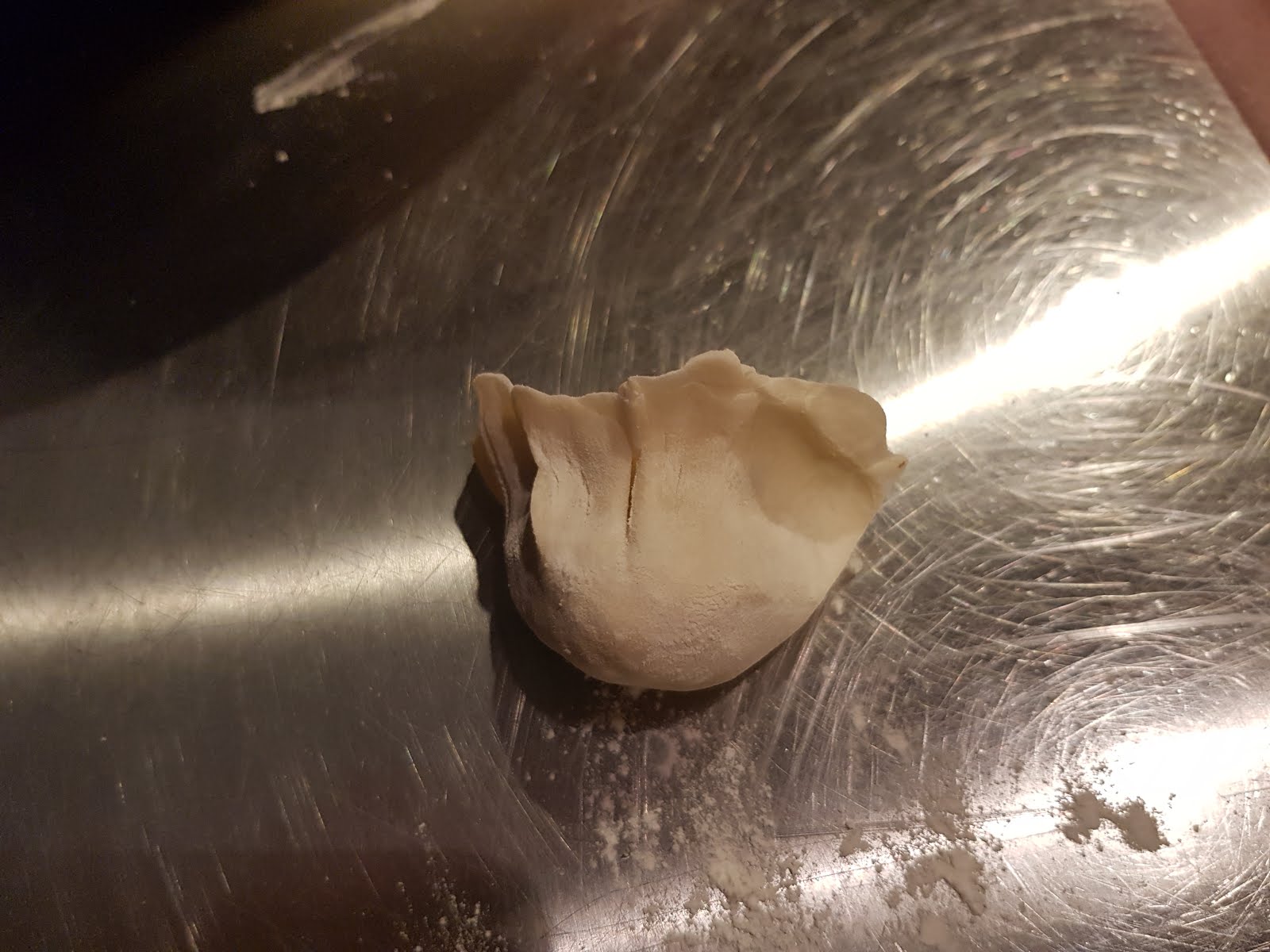 胖嘟嘟的,皮還薄薄尖尖的,俐俐落落的一個餃子就這麼出現了