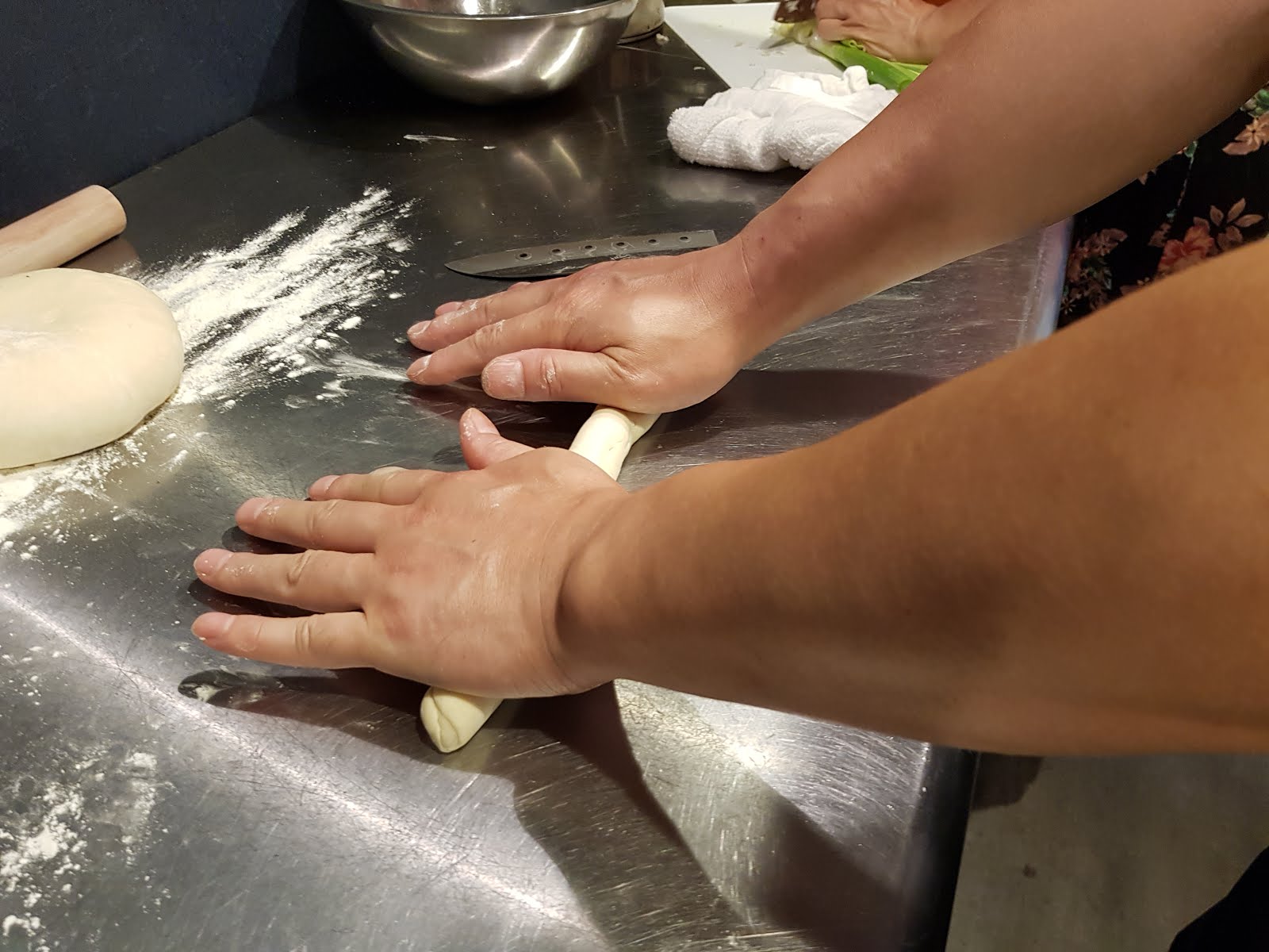 鎖哥示範揉麵團。