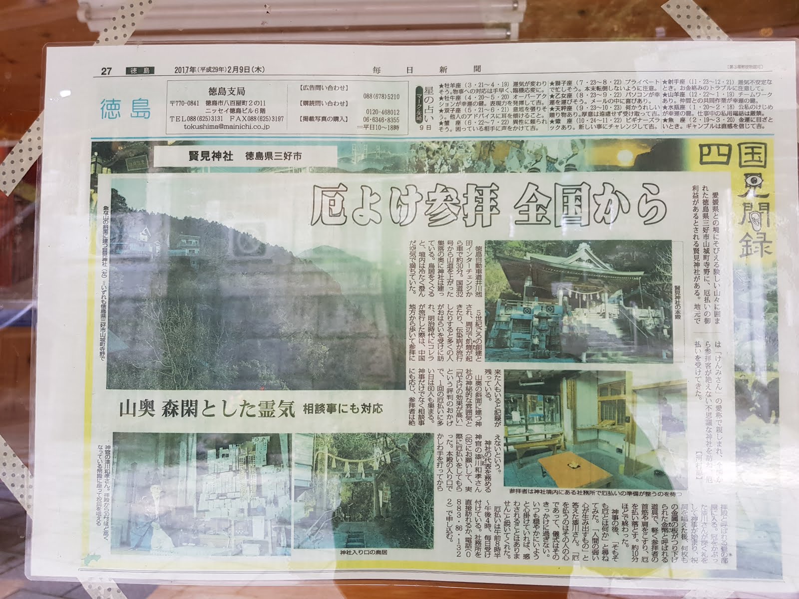 賢見神社建造於四國德島,深山中的斜面上,境內的空氣新鮮、澄淨。