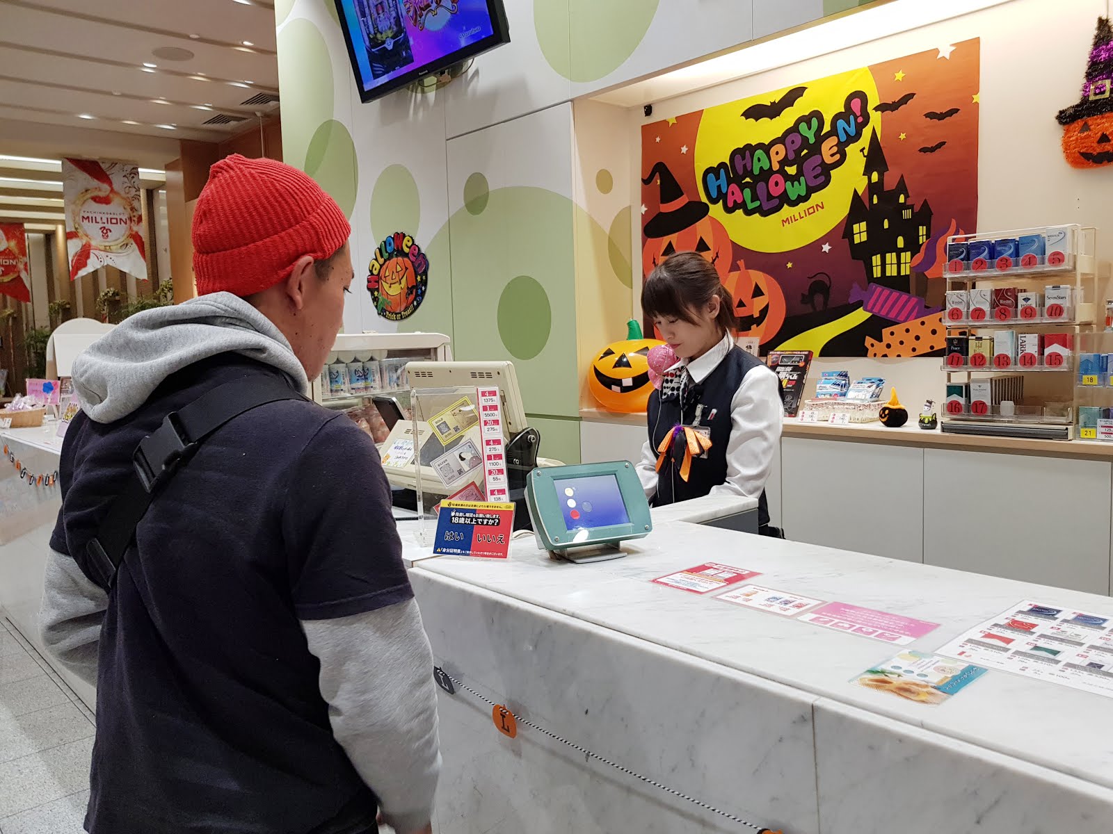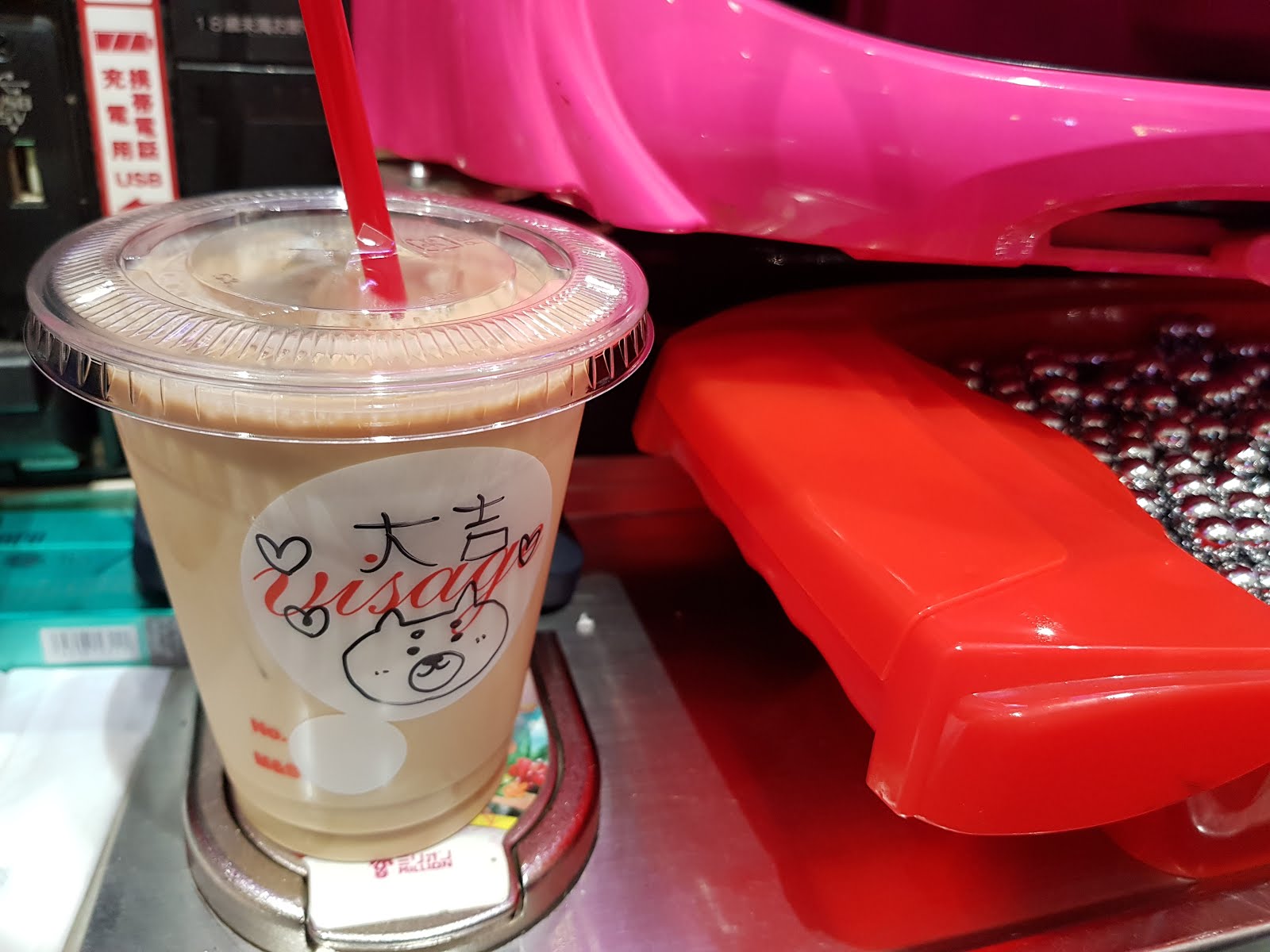 此圖為在小鋼珠店點了一杯咖啡,受到員工的祝福,大吉(だいきち)