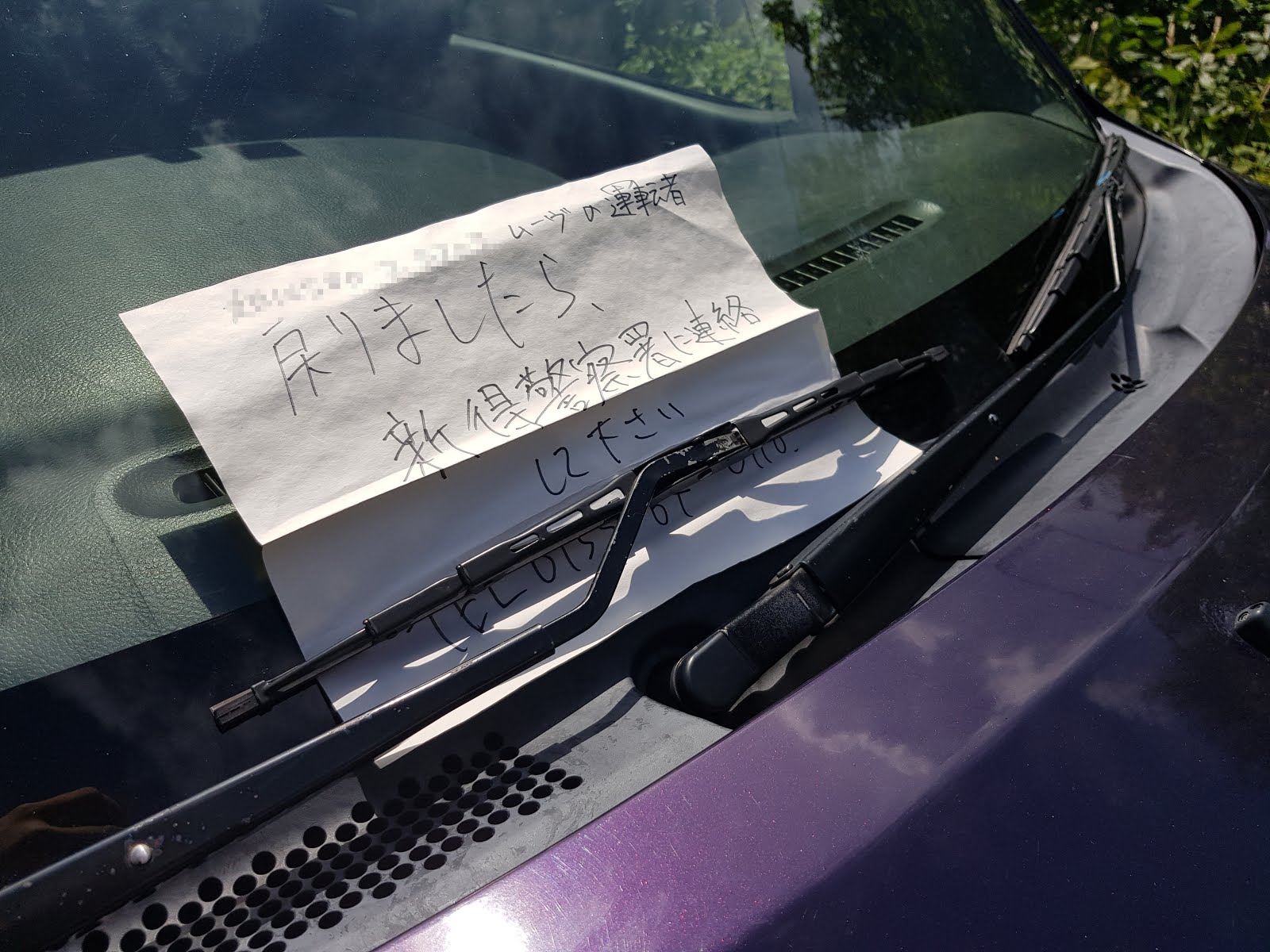 車子還被警察留了張紙條,說「再不回來就要把你抓去關十年(人家才沒有這樣說拉)」