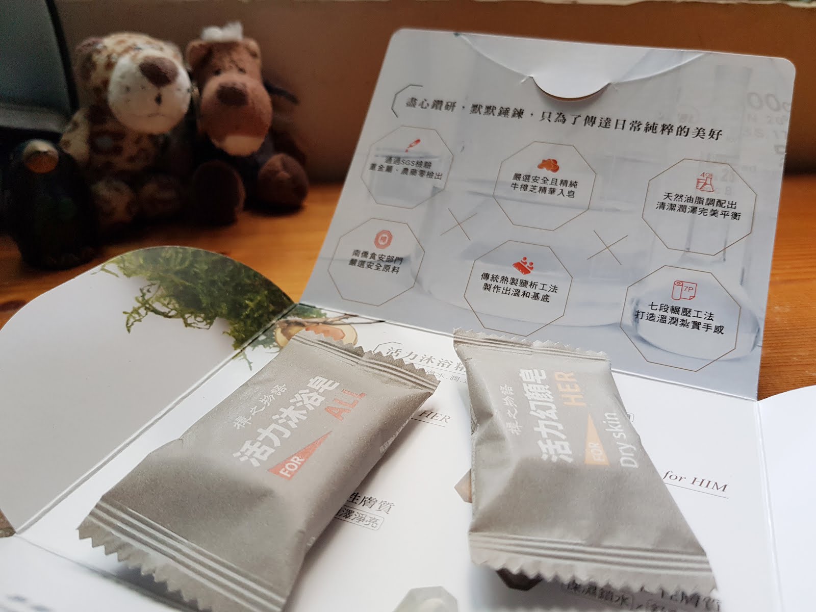 體驗組裡面會有一顆沐浴皂和一顆面皂(會看每個人膚質狀況配給你)