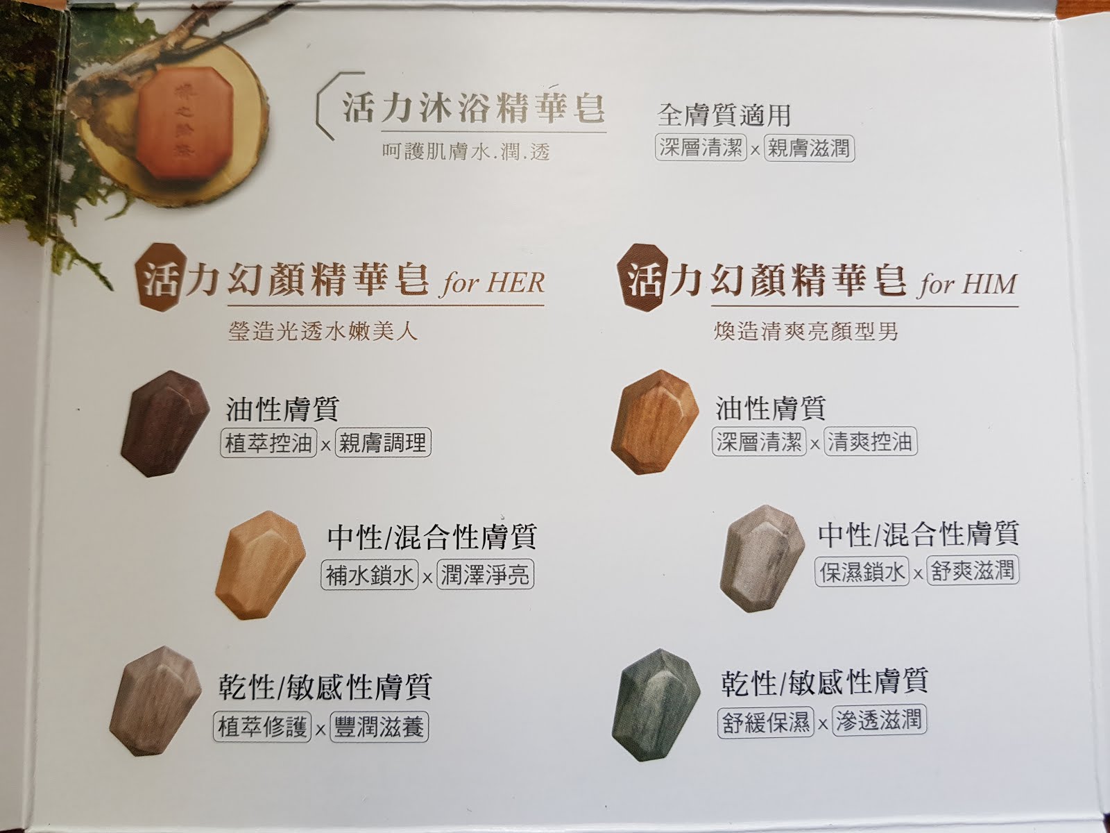 面皂又各種有三種對應肌膚:油性/混和性/乾性肌膚對應