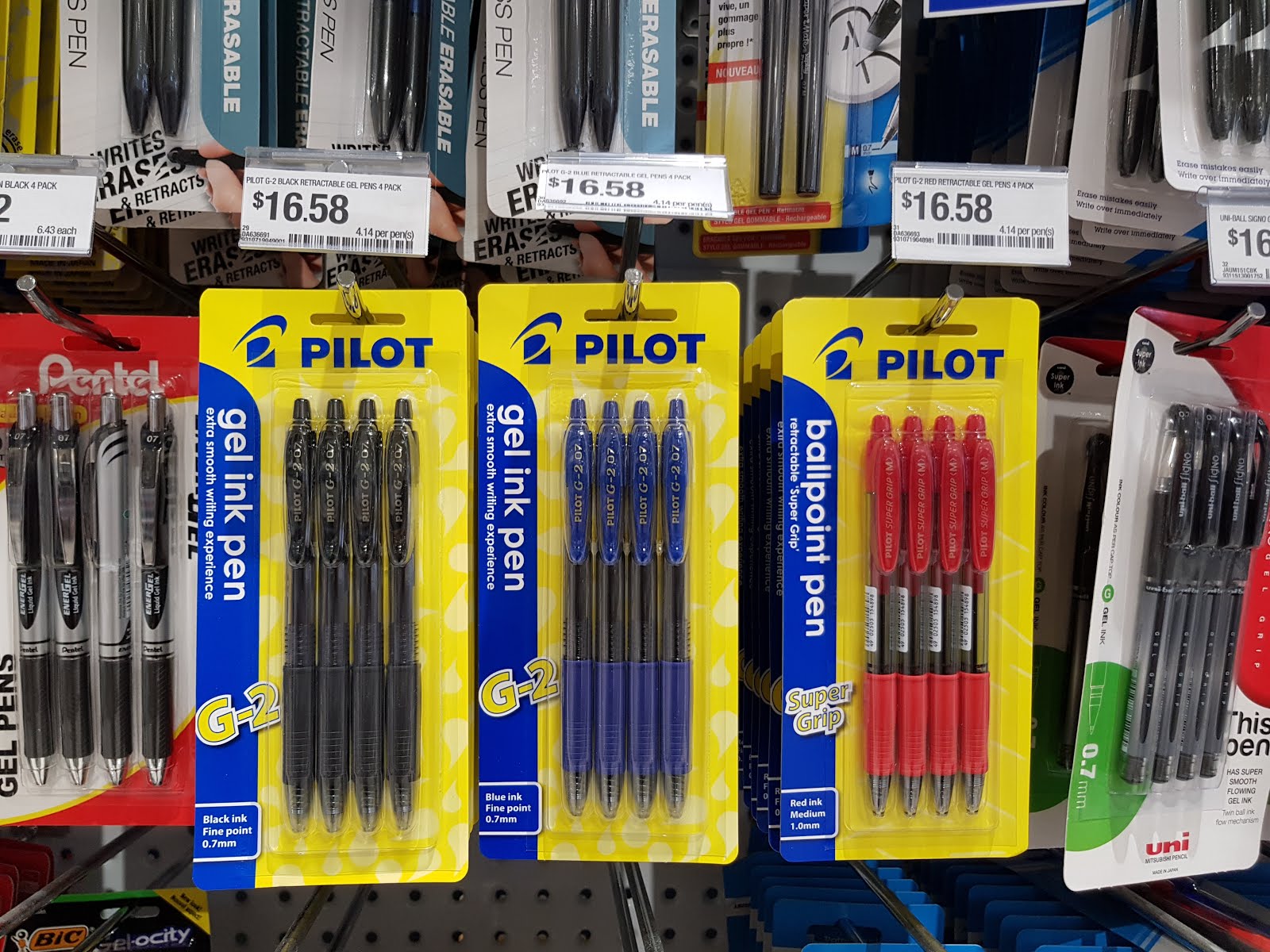 在這邊看到日本POLOT、Uni牌子的筆,一隻一定都超過$4(約台幣80元以上),而且還只有0.7mm