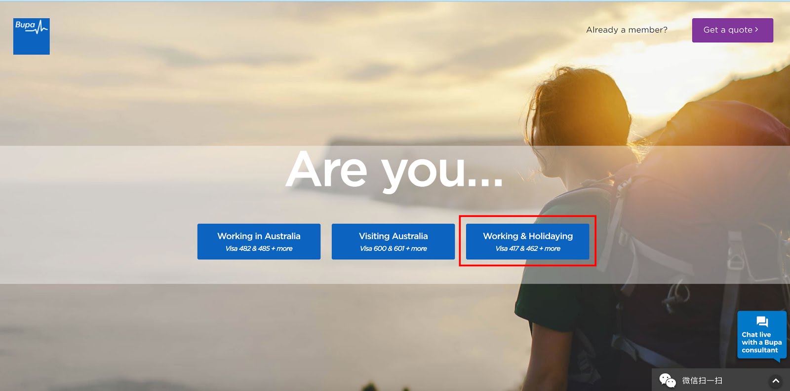 Bupa的這個險是專門給打工旅遊的保險,所以在保的時候要記得去選417Working & Holidaying