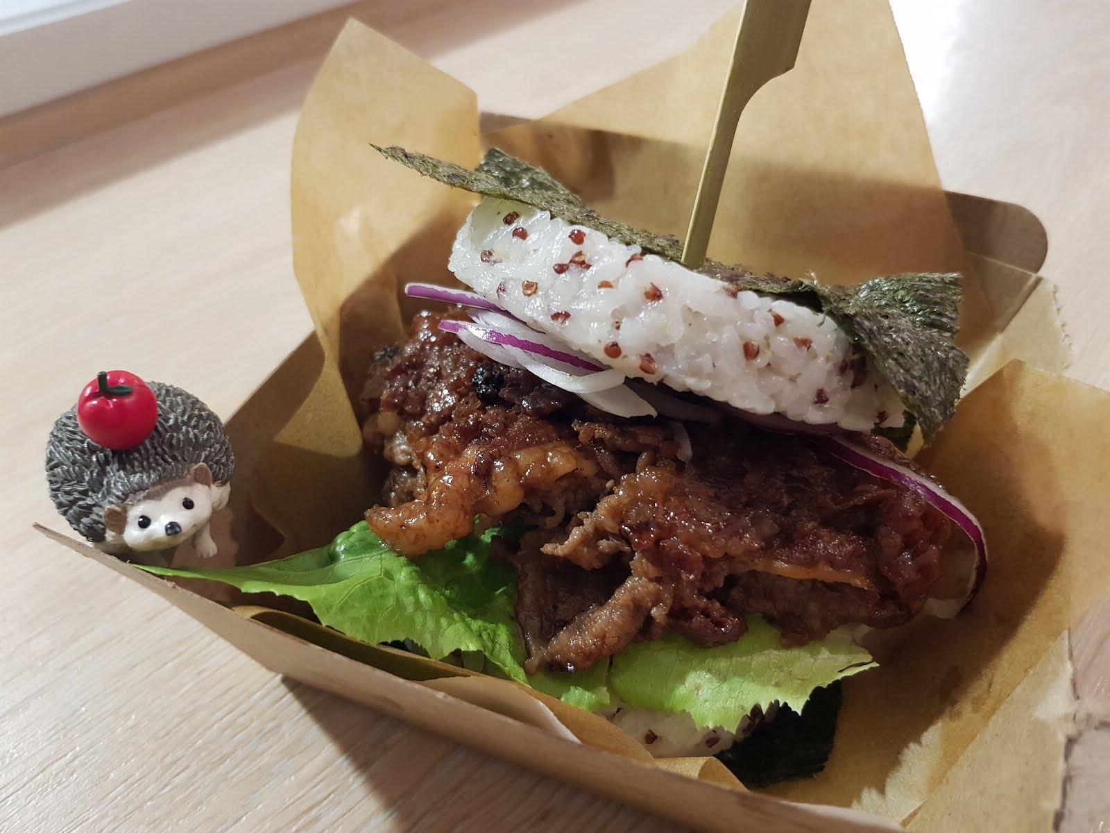 跟台灣的米漢堡有些不一樣像是米餅裡面有混紅藜麥、最外層包一片超大片的海苔、裡面還有夾一片紫蘇(有驚訝)、洋蔥也不像台灣是已經炒軟的這邊是用生的紅洋蔥,可是不會辣,吃起來覺得很新鮮,摩斯米漢堡在澳洲蹦出新滋味!?(⊙ꇴ⊙)