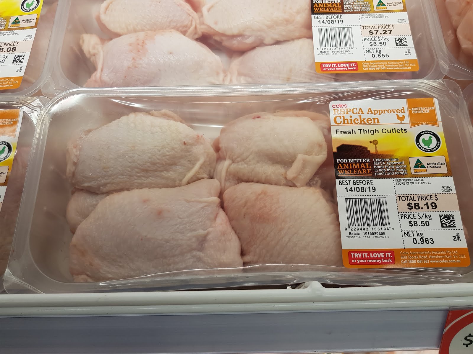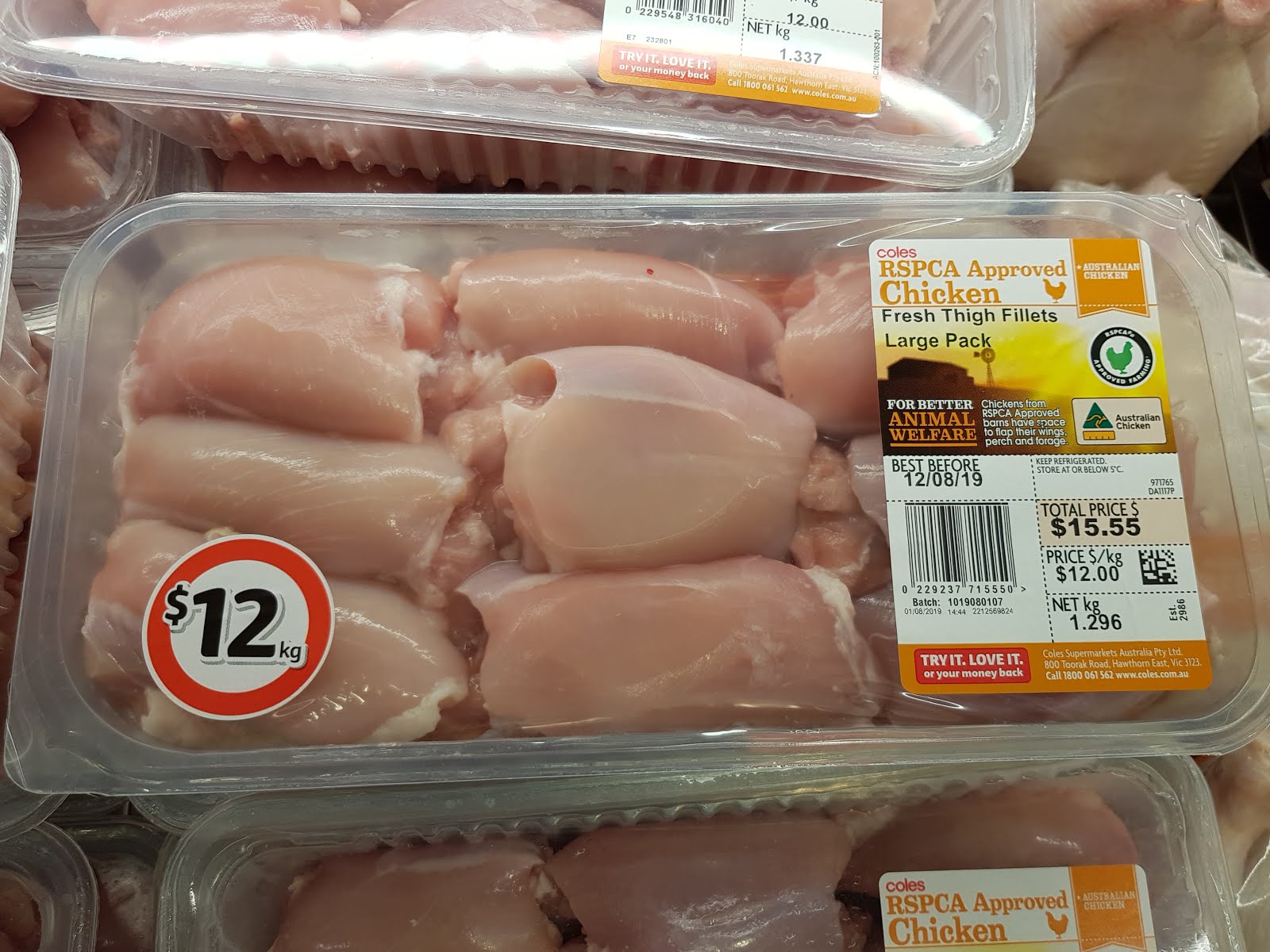 不過不像台灣是一整塊連著大腿的去骨肉,澳洲大多是小塊的去骨雞腿,外表長得很不像我們以前看到的雞腿排,所以很難發現,但其實還是有的。