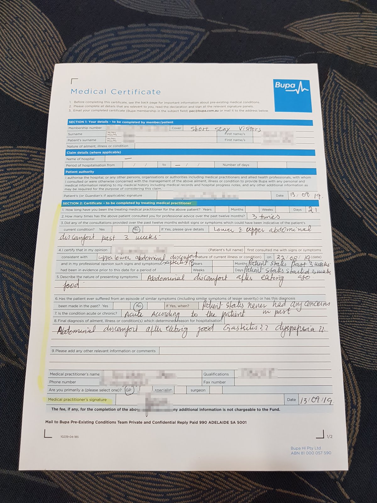 [澳洲,流水帳]在澳洲看醫生經驗分享(含Bupa保險請款費用參考)