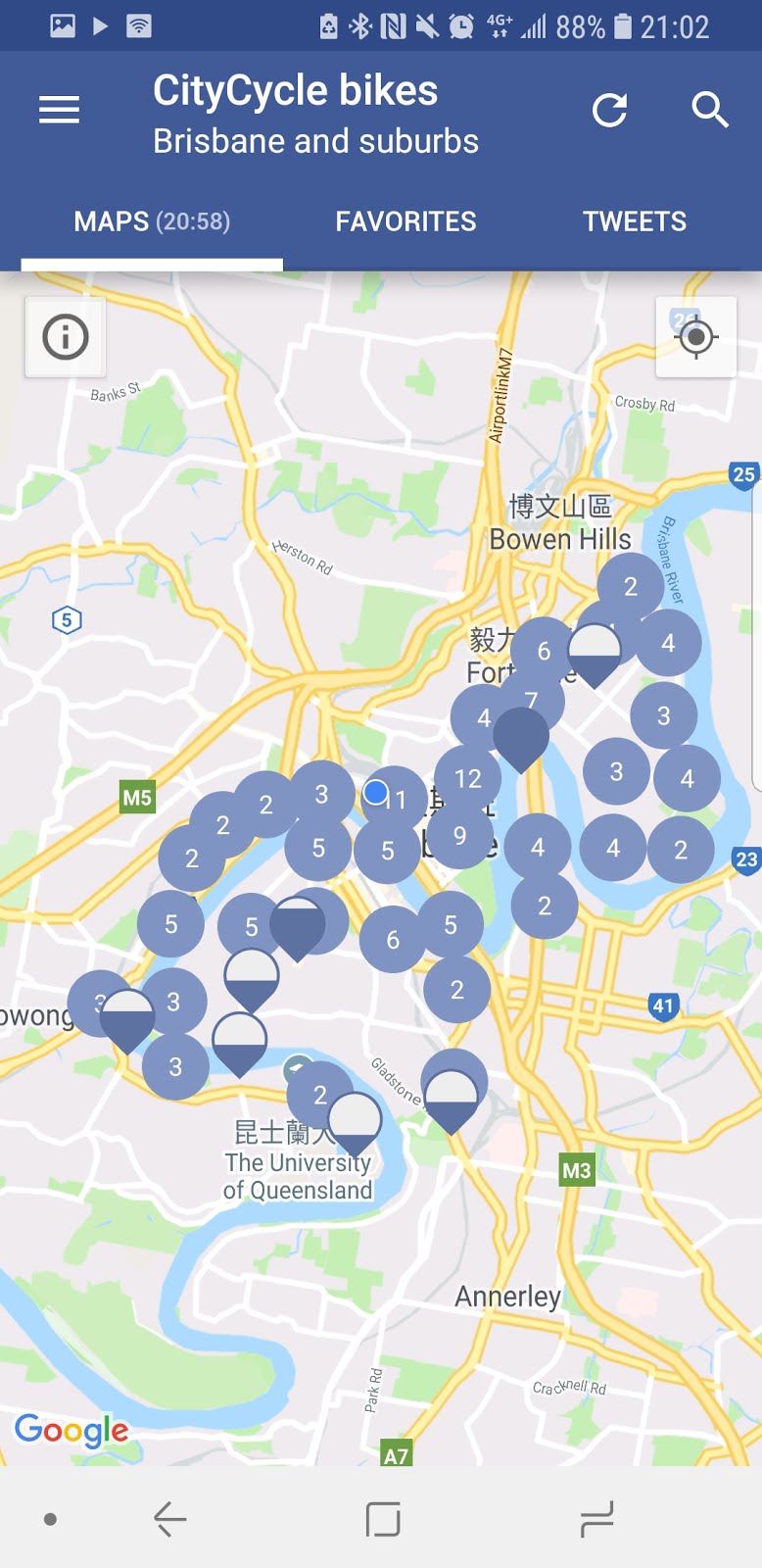 搜尋一下有官方和非官方的APP(Brisbane CityCycle、allbikesnow)