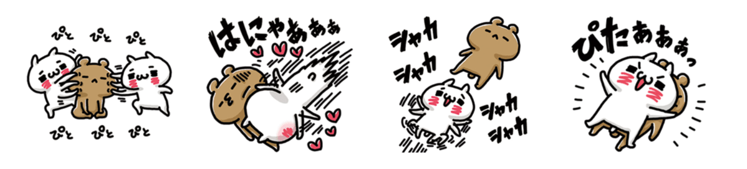 ぴと、ぴと | はにゃあああ | シャカ、シャカ | ぴたあああっ |