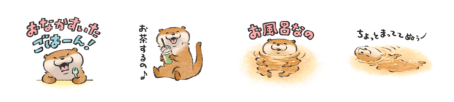 「かわいい嘘が得意だからカワウソっていうの。なんちゃって!」 って言ってたあの子のスタンプ、その4。LINE着せかえもあるよ♪