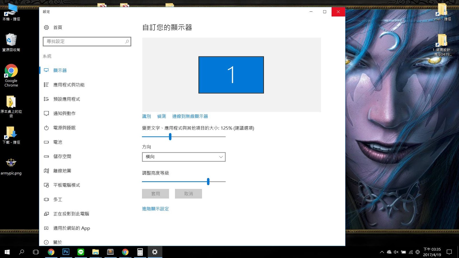 所以會將解析度改為125%(建議預設),這樣的話看網頁和操作就可以跟以往win7一樣正常大小。